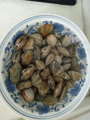 1.新鲜花蛤,加入清水,加盐,静置2小时,让花蛤自己吐出沙子。