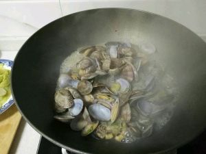 10.翻炒至花蛤全部开口。