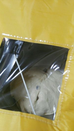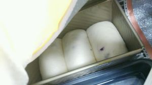 放入发酵箱,放盒开水,38度发酵一小时左右,至9分满。