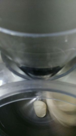 将中种所有材料放入厨师机,一档打15分钟冷藏18小时。我是头一天晚上10:30入冰箱,第二天4:30取出。
