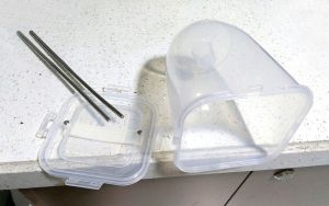 将容器和搅拌用具用沸水浸泡消毒数分钟,然后让容器内的水分自然晾干。