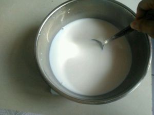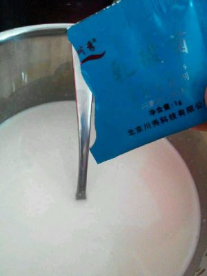 用具热水消毒,把糖和菌种放入牛奶中搅拌均匀
