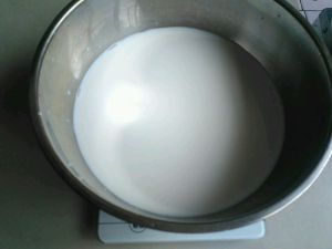 牛奶装进盆里。