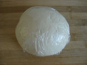 面粉、酵母和水揉成均匀的面团,醒20分钟。然后彻底揉光滑。