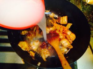 放入辣白菜翻炒几下再放入辣酱翻炒至肉色红润