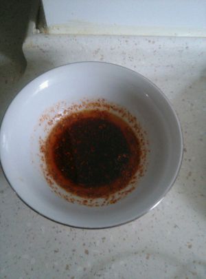 小碗,辣椒粉和盐,烧热油,做一点油泼辣椒,备用