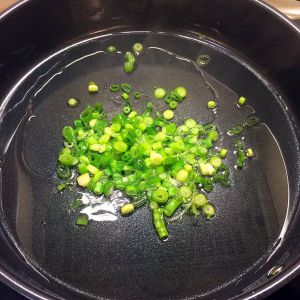 热锅冷油 放入葱花煸香 稍微焦一点好吃