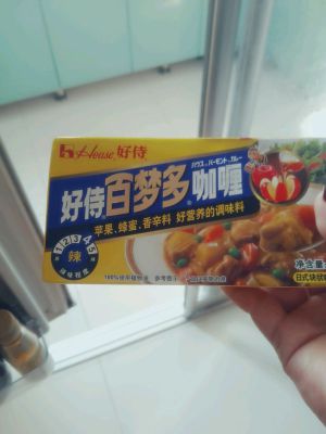 我用的是好侍的块状咖喱,如果有咖喱粉也可以,只是没这个味道好,一盒就是100g,所有食材切成丁碎