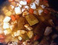 待土豆丁变白时,加入400ML高汤,煮沸后调中火煮10min。