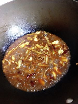 红辣椒、麻椒、花椒、葱姜蒜爆炒出红油,出香味。