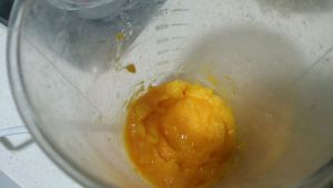 把削好的芒果用搅拌机打成泥