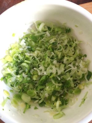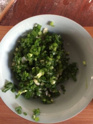 大葱白切碎,加入适量盐,锅里过下油,有香味扑鼻就可以捞起来放一边待用