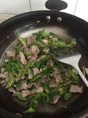 青椒切丝,肉切片备用(如果是瘦肉就用淀粉加少许酱汁调味),炒的时候也不用再放其他调料