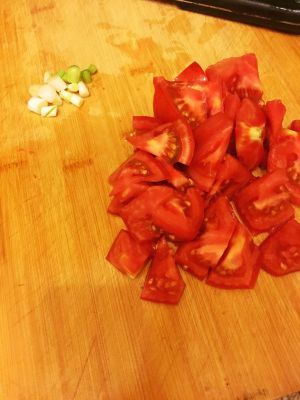 番茄洗净切块,葱姜蒜切碎末,豆腐一块洗净(不要用内脂豆腐),肉末是在市场买的绞好的肉馅