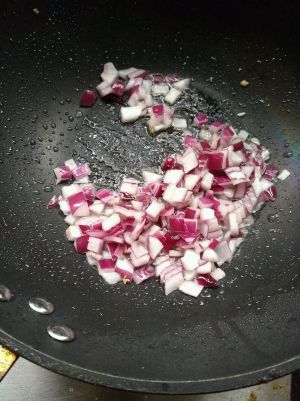 放入十三香,小葱爆香,放入西红柿翻炒一分钟