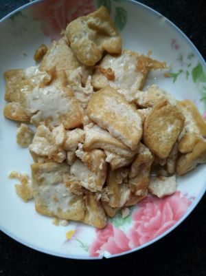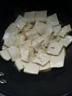 热锅热油把豆腐两面煎至金黄,煎的时候火小一点,不要常翻动,易碎,我的好像切薄了点都碎了