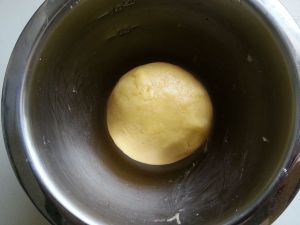 用手捏成团,揉好面团很光滑,不粘手也不粘盆,将揉好面团包上保鲜膜,放入冰箱冷藏40分钟