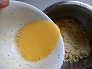 面粉加入切成小块的黄油、糖、盐搓成沙子状