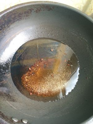 热锅,烧油放入花椒炒出香味,在加入冰糖炒至融化(有的把花椒炒了之后捞出来了,我做的没有把花椒捞出来)