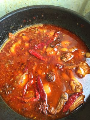 炒香后加入热水,淹过鸡肉