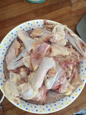 小公鸡剁成大块,用凉水多洗几次,洗去血沫和脏东西