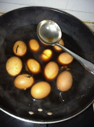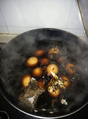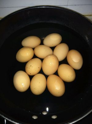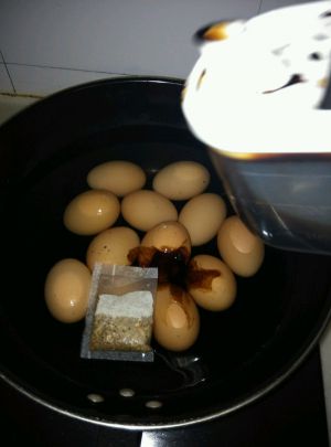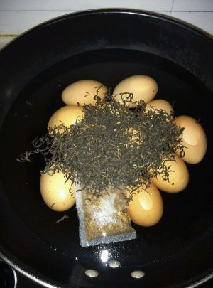 鸡蛋用盐搓洗干净 洗净后茶叶、盐一起放进凉水煮沸后小火煮十分钟 不掀盖 焖一会 放得越久越入味~