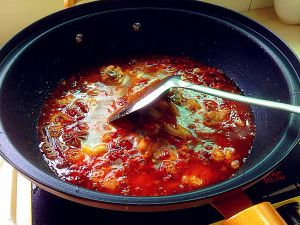 在放入少许豆瓣酱继续炒香