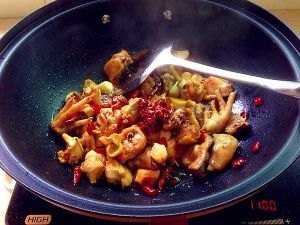 热锅凉油!油烧热,放入鸡块翻炒!