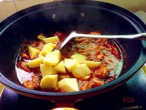 加入开水炖煮,放入土豆块!继续炖煮!