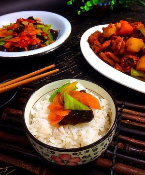 在放入少许胡萝卜块,没有可以不放,家里正好剩下半个怕浪费就丢进去了