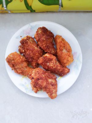 平底锅加大半锅的油,烧五成热!中小火把翅根一个一个的放进裹粉中。在轻轻放入油锅炸!炸制金黄用筷子翻个面!