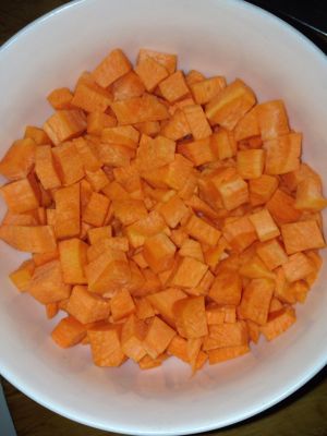 将豌豆剥壳;玉米剥粒;胡萝卜去皮,切丁。