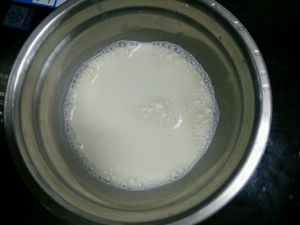 纯牛奶,淡奶油和糖放入盆中,小火加热化糖,糖化完后稍微放凉加入蛋黄搅匀