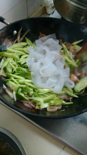 加入拉皮,黄瓜炒至变色。