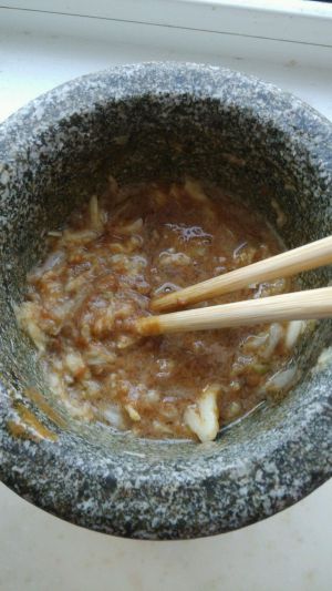 蒜颠至蒜泥加入适量醋,麻汁,盐,味精待用。