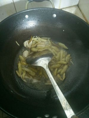萝卜丝煮软后捞出,锅里放油,放入泡椒,姜蒜翻炒