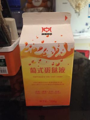 我买的蛋挞液,从冰箱里冷冻室拿出来,泡热水里让它尽快化开,化成一点冰渣没有的液体。