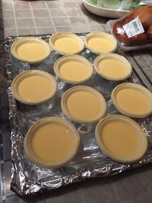 把蛋挞液倒入蛋挞皮,7分满,后来实验证明,我倒少了原谅我这初级工,估计8分满正好。我下次改进。