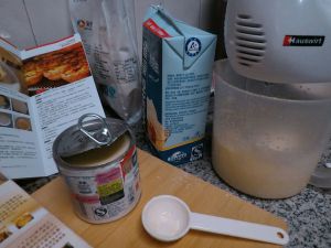 将牛奶,淡奶油,砂糖,炼乳混合加热至砂糖融化,晾凉加入蛋液…