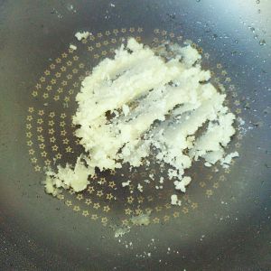 锅中放少许油,一大勺糖,小火慢熬糖浆。