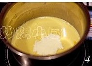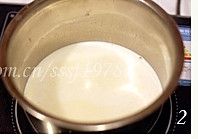 第一步,牛奶,淡奶油,炼乳,白砂糖放在干净的容器里,加热并搅拌均匀,但不能烧开哦,只是为了让糖化开