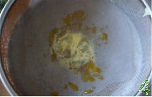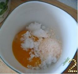 放至稍凉,加入打散的蛋黄,搅拌均匀;