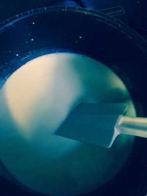 牛奶,奶油,砂糖,量好之后加入锅中,小火至砂糖融化。