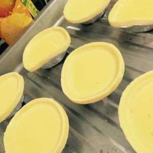 糖,奶等加热溶解放凉,加入蛋黄淀粉过筛。挞皮高处挞模,底部要薄否则不脆,挞液7分满,挞皮要静至二十分钟避免回缩,220度中下层烤25分钟。