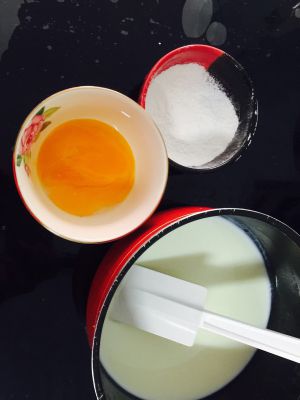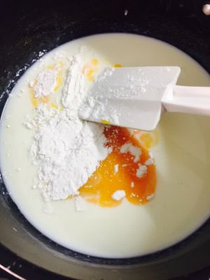 淡奶油180克,牛奶140克,糖80克,蛋黄4个,淀粉15克,炼乳15克