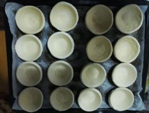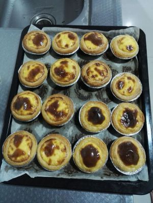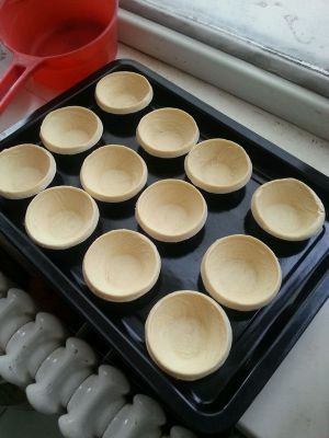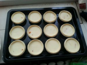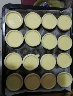 把挞水装进挞皮,不要装满,7-8分满正好。