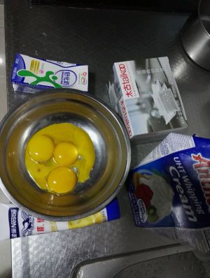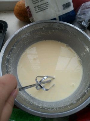 蛋液+奶油+牛奶+白砂糖 搅拌