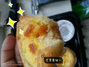准备好挞皮,把芒果切丁。放入摆好的挞皮中。