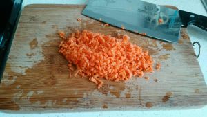 煮粥的时候,把胡萝卜洗净去皮切碎备用。