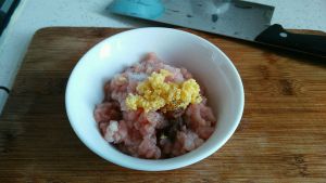 肉末碗中放入适量姜末,胡椒粉,盐拌匀腌制30分钟。